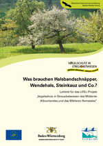 Vogelschutz in Streuobstwiesen - was brauchen Halsbandschnäpper, Wendehals, Steinkauz und Co.?Die LIFE+-Broschüre gibt einen Einblick, welche Ansprüche die besonderen Vogelarten auf der Streuobstwiese haben. Infos zu Habitatbäumen, empfehlenswertem Bestandsaufbau, Kleinstrukturen, Raumbedarf und Ansprüchen von Halsbandschnäpper, Neuntöter, Wendehals, Steinkauz etc.2 MB